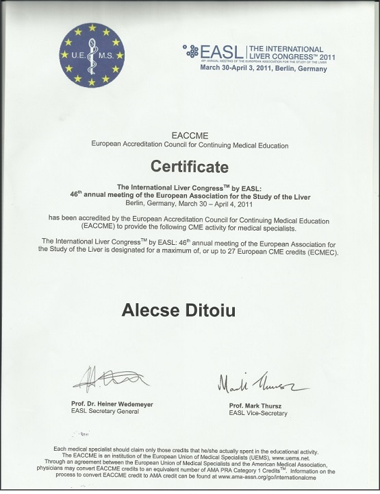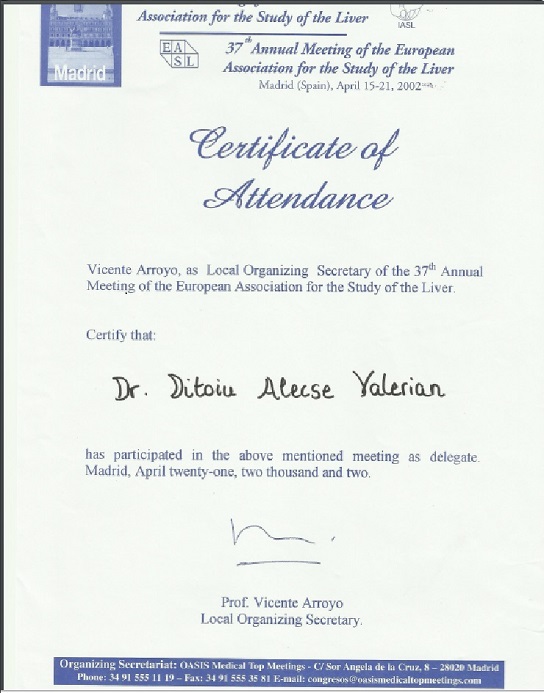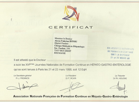 Sunt Dr Ditoiu M Alecse Valerian, medic primar boli interne, gastroenterologie, hepatologie si endoscopie digestiva, sunt doctor in medicina cu 40 de ani de practica medicala, incepand cu medicina de familie la tara si terminand cu doctoratul.